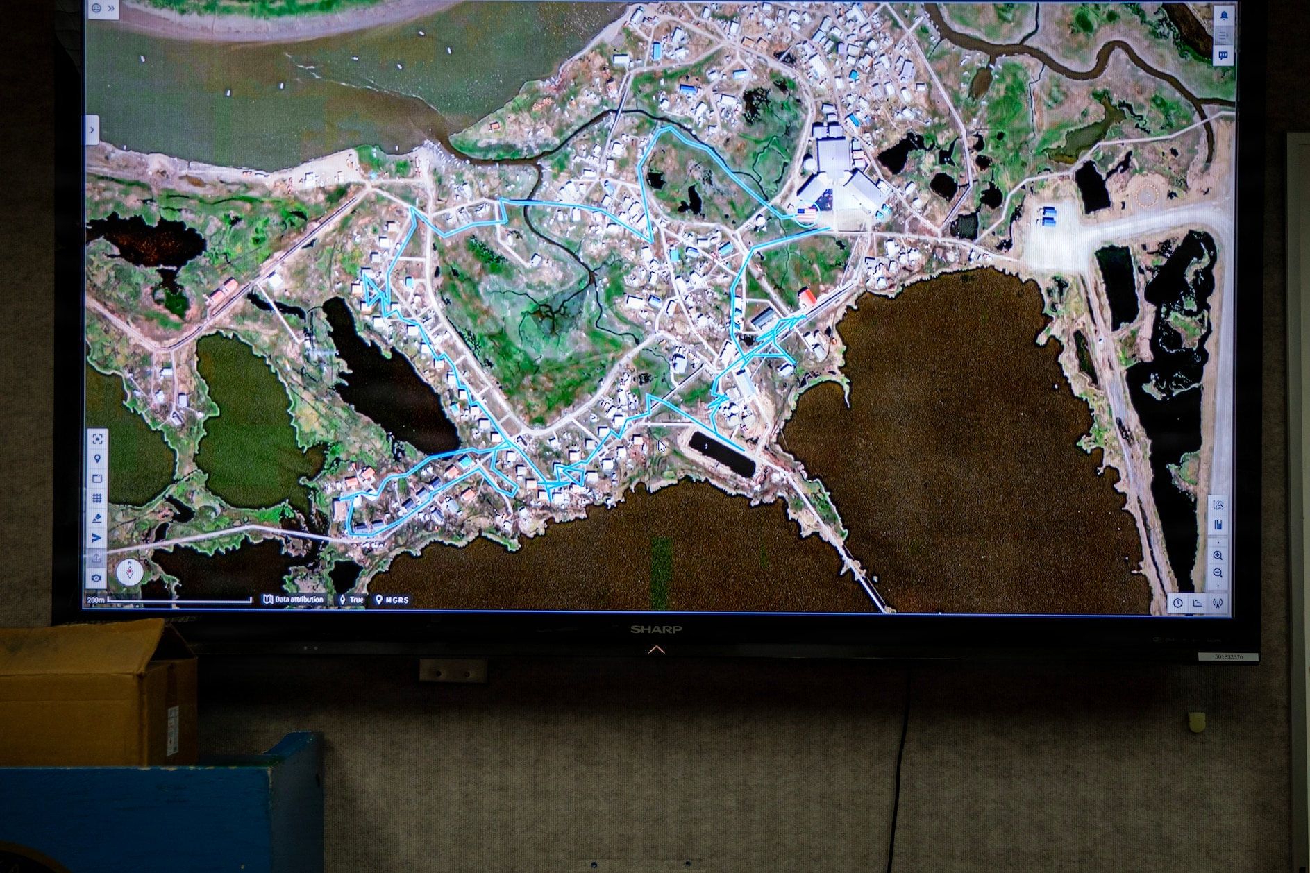 Tech. Sgt. Wolf Russo, Common Operating Picture manager with the Alaska National Guard’s Joint Force Headquarters, demonstrates capabilities of Maven in response to Western Alaska storms at Joint Base-Elmendorf Richardson, Alaska, Nov 10, 2025. Maven improves communication with joint partners and enhances the COP while tracking supplies and personnel by integrating collected data from SHOUT Nanos. (Alaska National Guard photo by Azavyon McFarland)